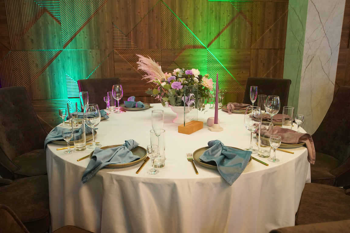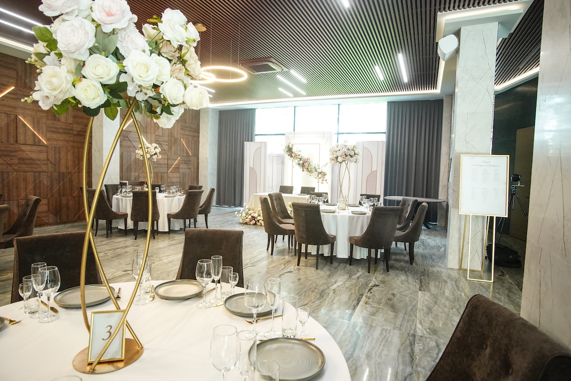 Мы подберём площадку под количество гостей и желаемый стиль: от элегантного банкета до лёгкого фуршета.